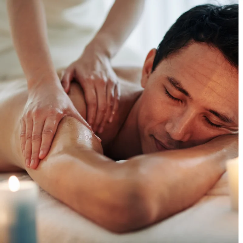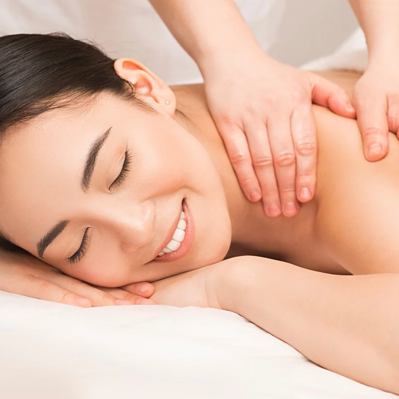 It reduces stress and anxiety, eases chronic pain in the back, neck, and shoulders, enhances flexibility and range of motion, and promotes better sleep and immune function. Multiple options include relaxation, deep tissue for knots, and sports for recovery.